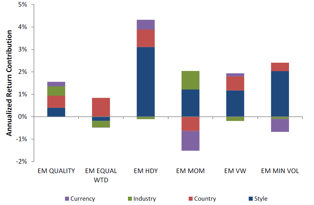 Annualized Active Return Contribution to MSCI EM Factor Indexes
