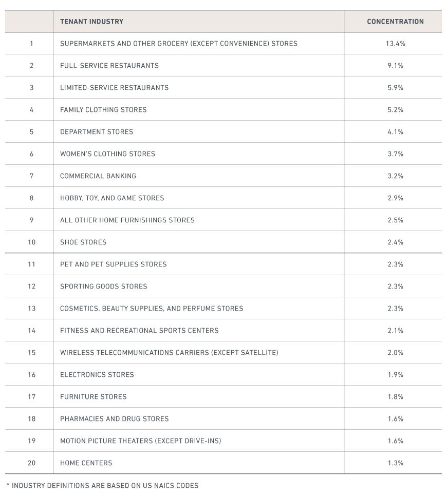 Top 20 tenant industries within retail properties