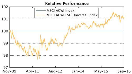 The MSCI ACWI ESG Universal Index outperformed the MSCI ACWI Index in a backtested simulation