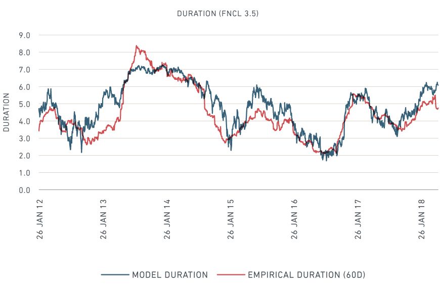 Given the uncertainties around future refinance regimes, we back tested our MSCI prepayment models by comparing the model durations with empirical durations that reflect the actual price dynamics of the MBS market historically.