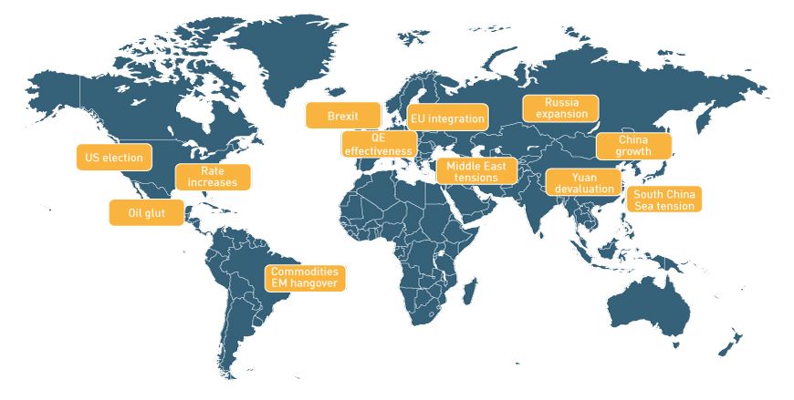- The uncertainty created by geopolitics, including the possibility of the U.K. leaving the European Union, a surge of populist sentiment worldwide, and tensions across the Middle East and Southeast Asia