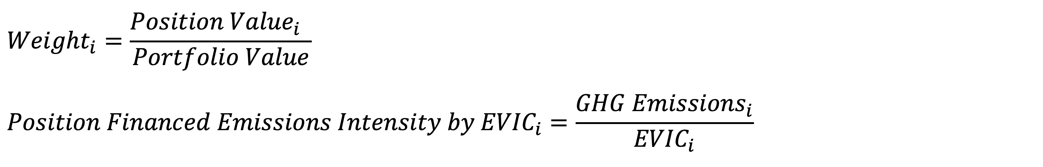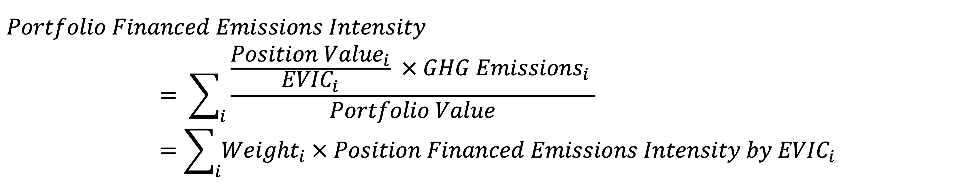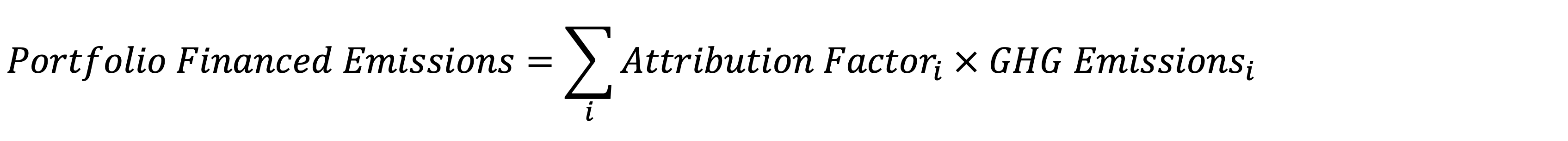 Financed emissions at the portfolio level are the invested positions' total emissions of greenhouse gas (GHG). Position-financed emissions are defined as the product of issuer-level GHG emissions weighted by the financing share that the position represents (the attribution factor).
