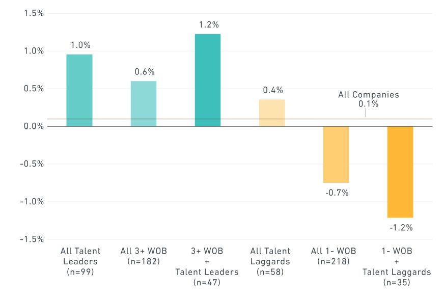 Talent Laggards with fewer women on boards showed negative productivity rates