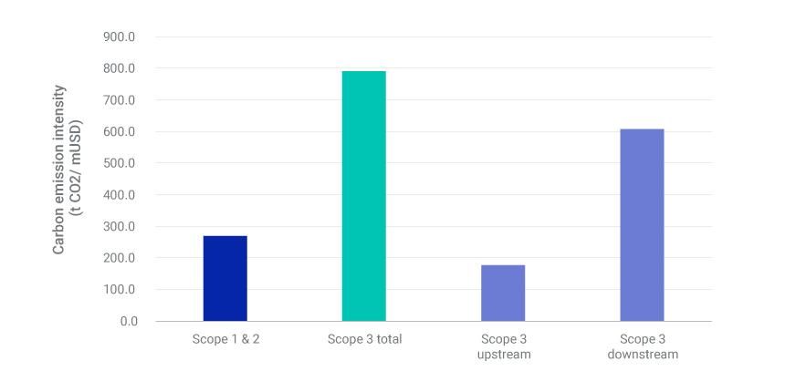 Average Scope 1 & 2 vs. Scope 3 Carbon Emission Intensity for MSCI ACWI IMI