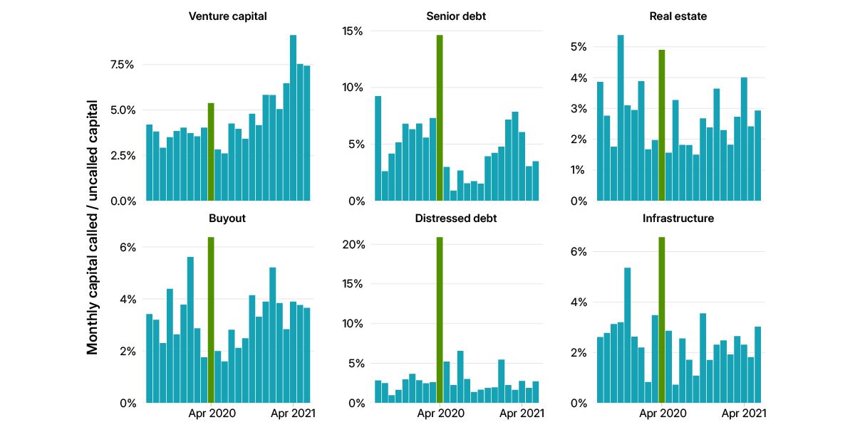 At the outset of the COVID-19 crisis globally, capital calls across several asset classes doubled — and even quintupled in the case of distressed debt — relative to the preceding months. Reasons for the dramatic increase in contributions varied by asset class.