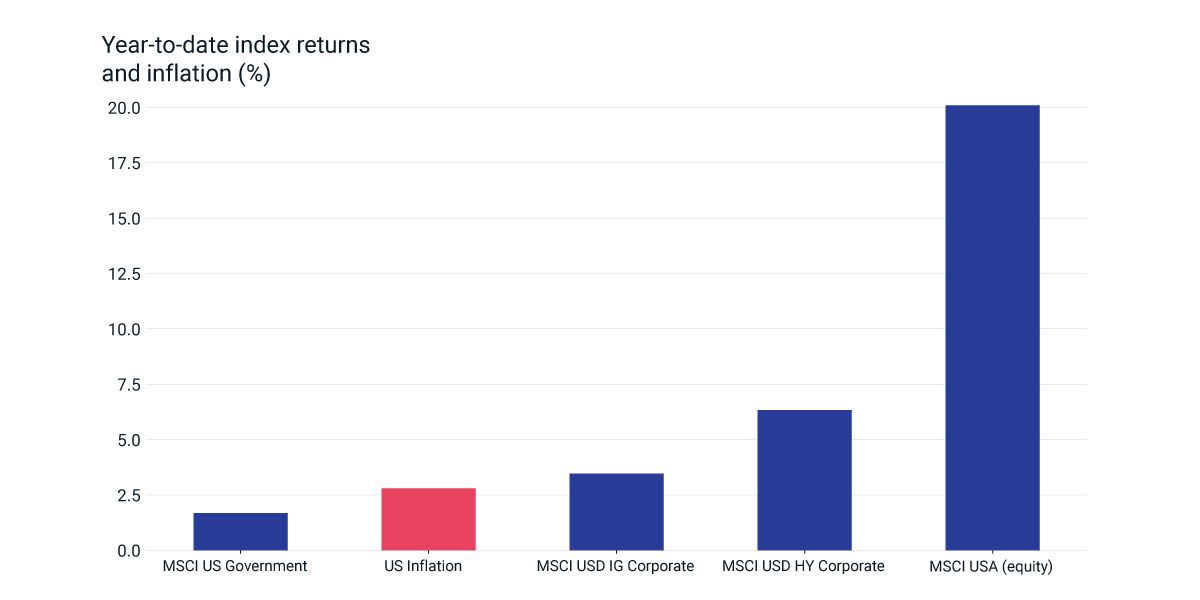 Returns as of July 24, 2023, and inflation as of June 2023.
