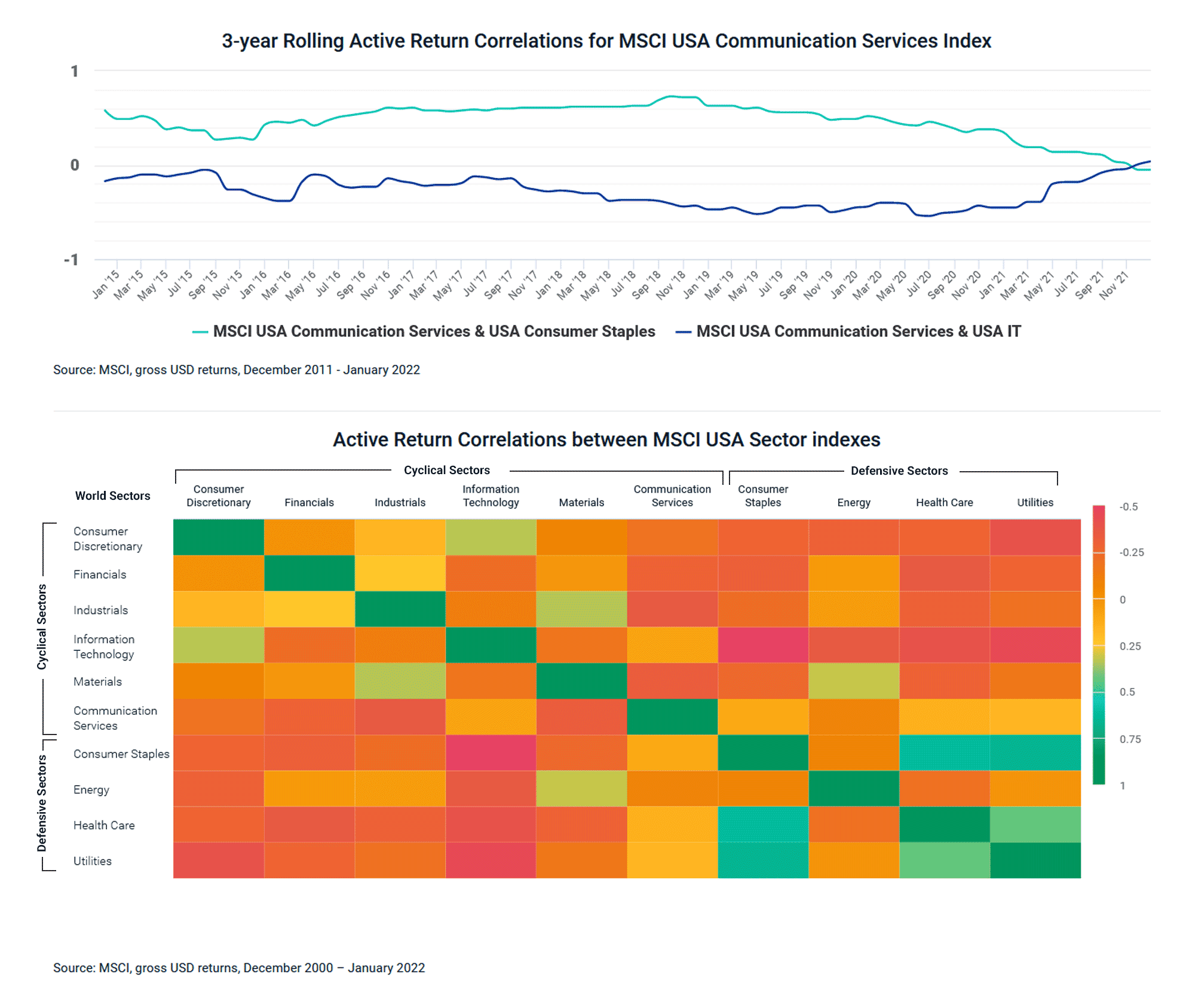 However, one sector does stand out. Communication services sector index showed more negative correlations for sector indexes within the cyclical group, than it did with defensive sectors.