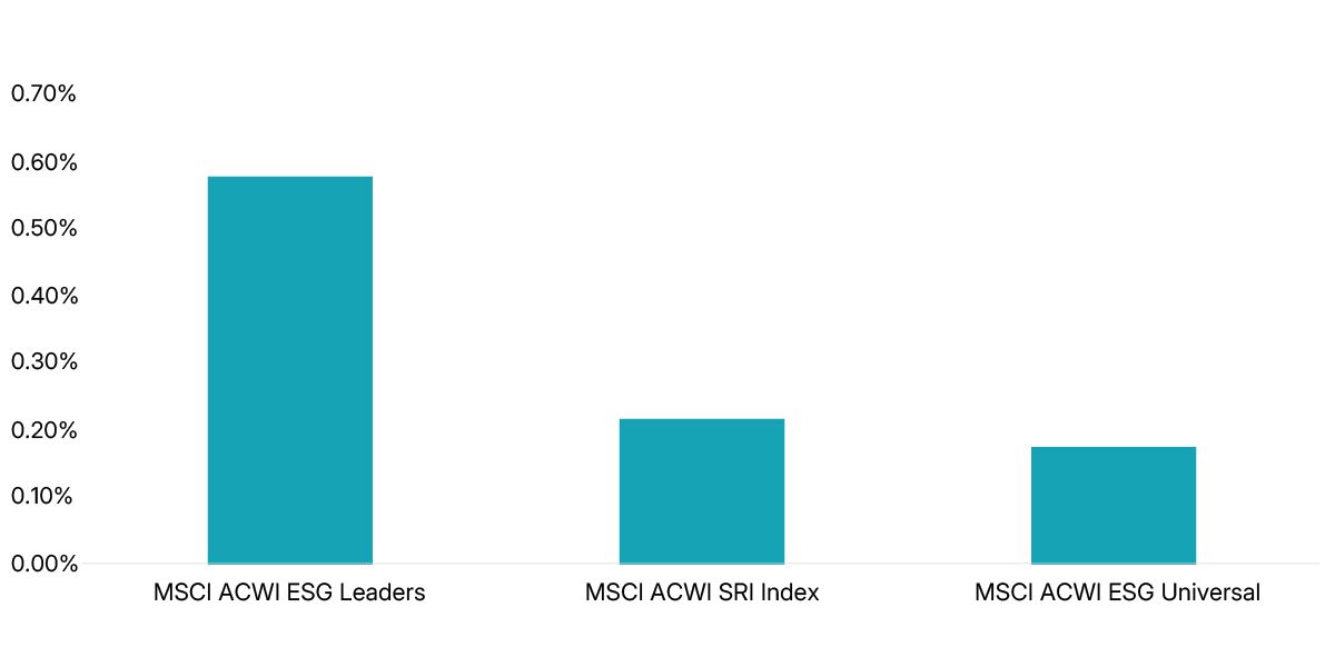Data from April 1, 2025, to April 8, 2025. Chart shows the cumulative active return of select MSCI ESG Indexes relative to the MSCI ACWI Index. Source: MSCI ESG Research