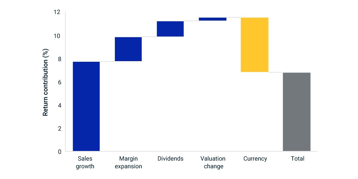 Return attribution is annualized from Dec 2017 through July 2023 and is gross in USD.Top of Form