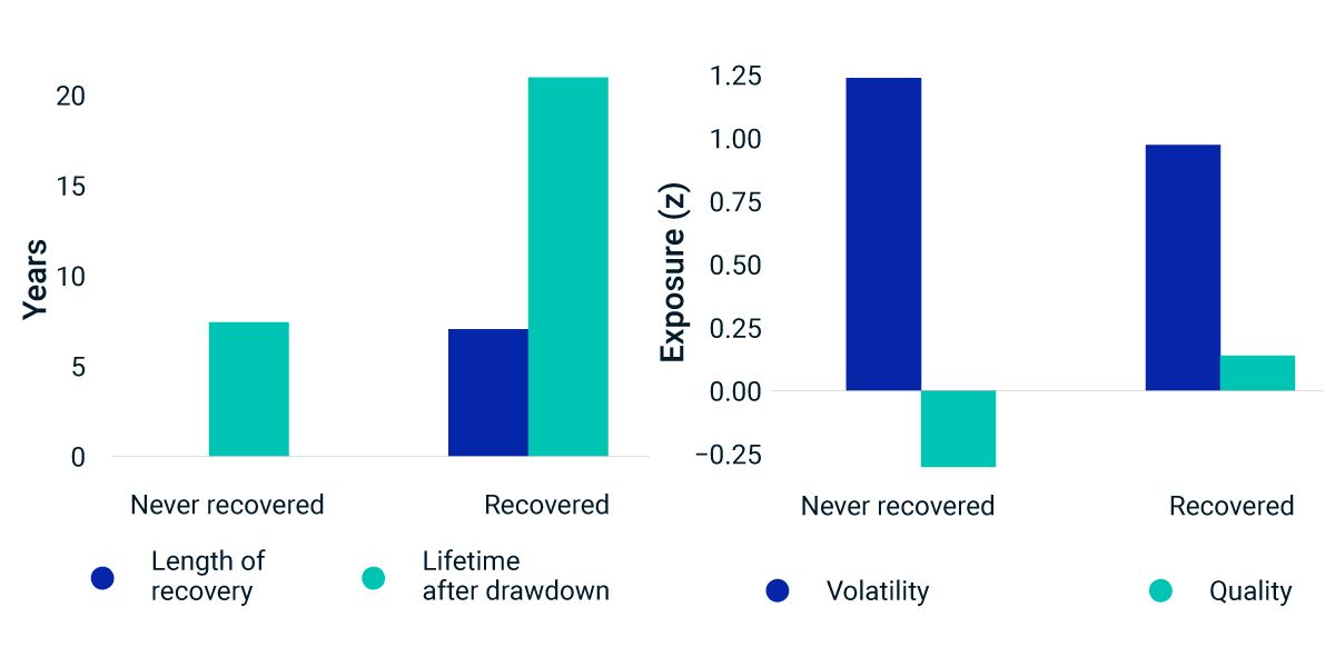 The firms that did recover tended to be more defensive — i.e., displaying larger size, higher quality and lower risk — in the immediate aftermath of the crash.