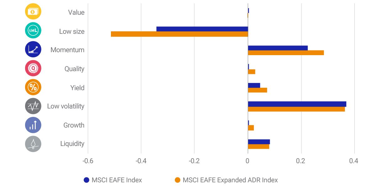 Average MSCI FaCS exposures: MSCI EAFE Index vs. MSCI Expanded ADR Index