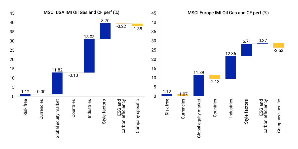 Performance attribution for oil, gas and consumable fuel in the US and Europe